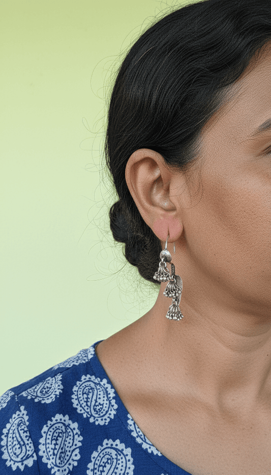 Designed to echo India’s rich traditions, our earrings collection is a celebration of pure silver craftsmanship. From minimalist designs to vintage-inspired danglers and elegant drop earrings handmade in 92.5 silver, each piece is lovingly made to add grace, style, and a touch of heritage to your every moment.